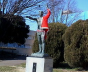 ※「大気」の像:大学内にある像。芸専の学生だか知らんが、季節に合わせて何かしら飾り付けられる事がある。ある時は浮き輪を持ち、ある時はトイレットペーパーを大量に所持していた。ちなみに、何が「大気」なのかは不明。特筆するほど大学の象徴的な存在でもなく(単に目立ちやすい位置にいるだけ)普段は気にも留められていないため、自分は密かに「(存在が)空気」の像と呼んでいる。